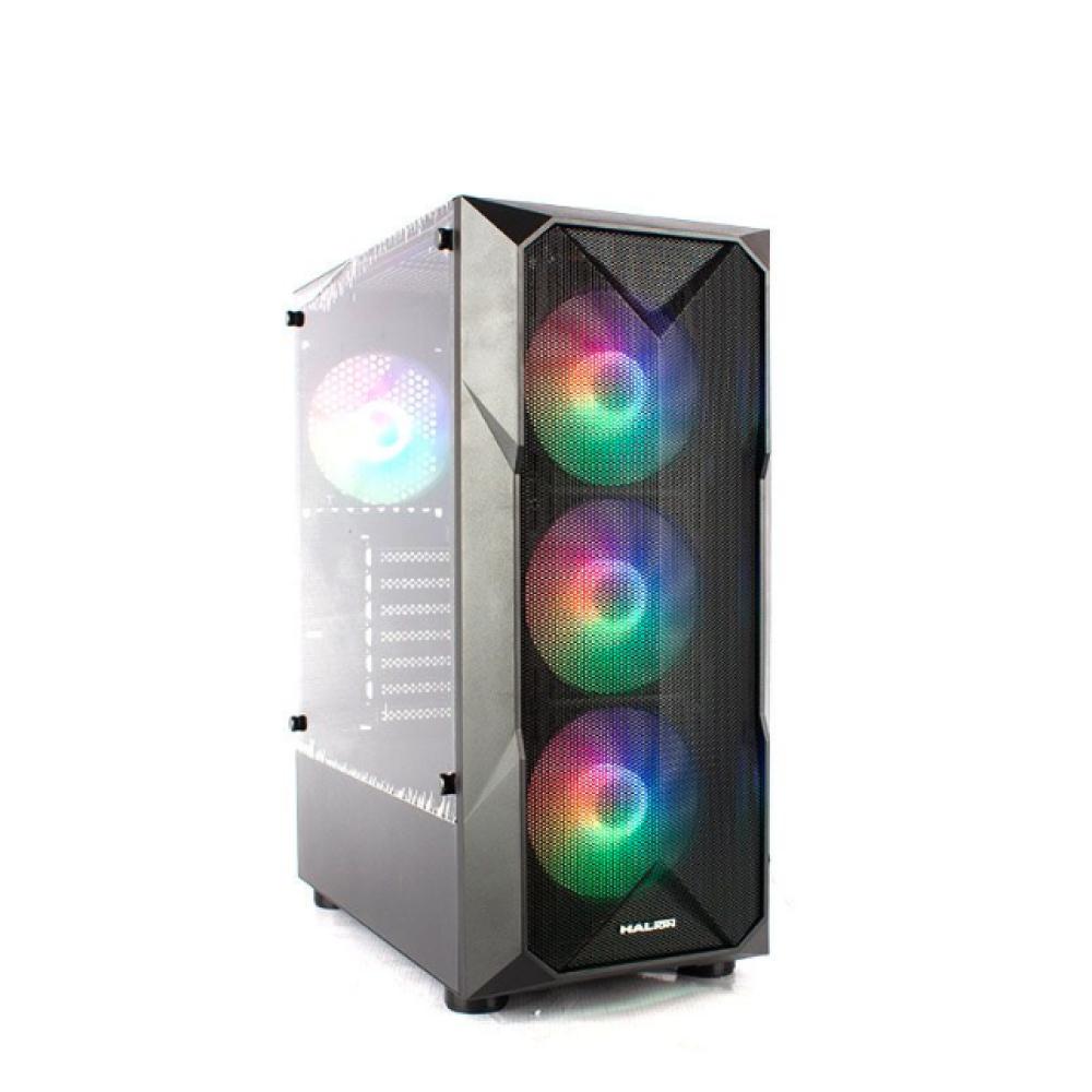 El CaseGamer Halion Stuka CR11 es un gabinete de torre media diseñado parajuegos, que incluye una fuente de poder de 500W y cuatro ventiladores RainbowRGB de 120 mm preinstalados. Su panel lateral de vidrio templado permiteexhibir los componentes internos.