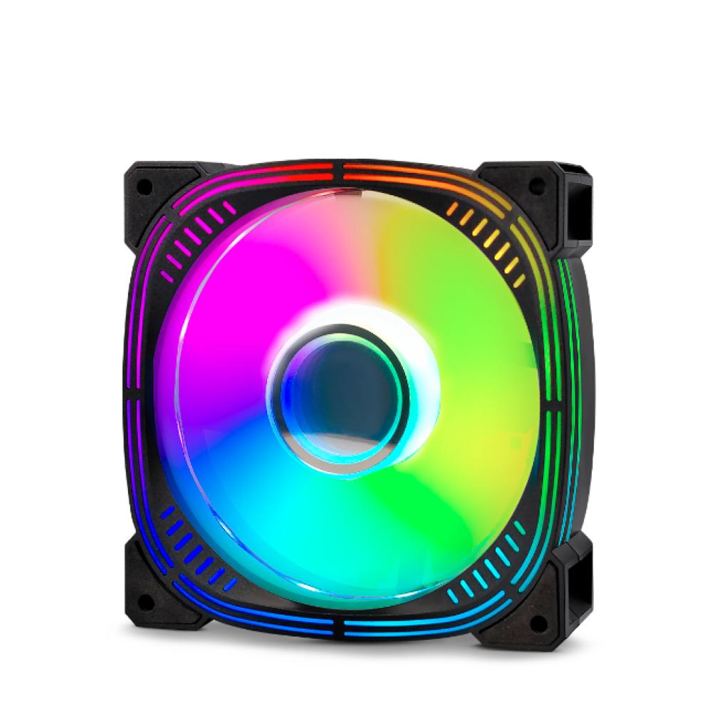 El Cooler para case Airboom Cathodo ABR101 es un ventilador de 12cm diseñado para gabinetes de PC gamer, que destaca por su iluminación Rainbow LED con efecto de doble halo.