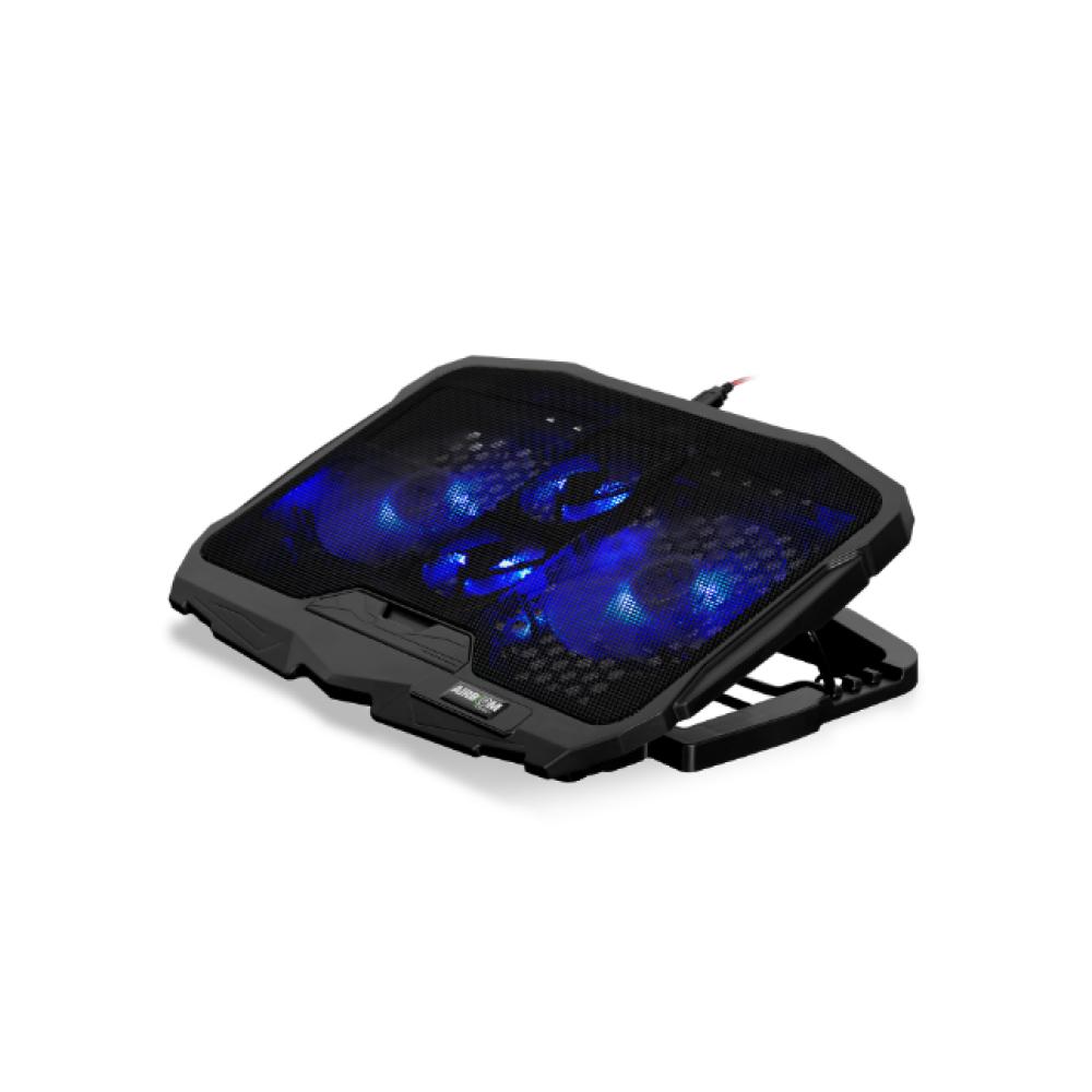 El enfriador para laptop Airboom Vortex 4 (modelo AB008) es una base de refrigeración diseñada para notebooks de hasta 17 pulgadas. Cuenta con cuatro ventiladores, iluminación LED azul y dos puertos USB adicionales.