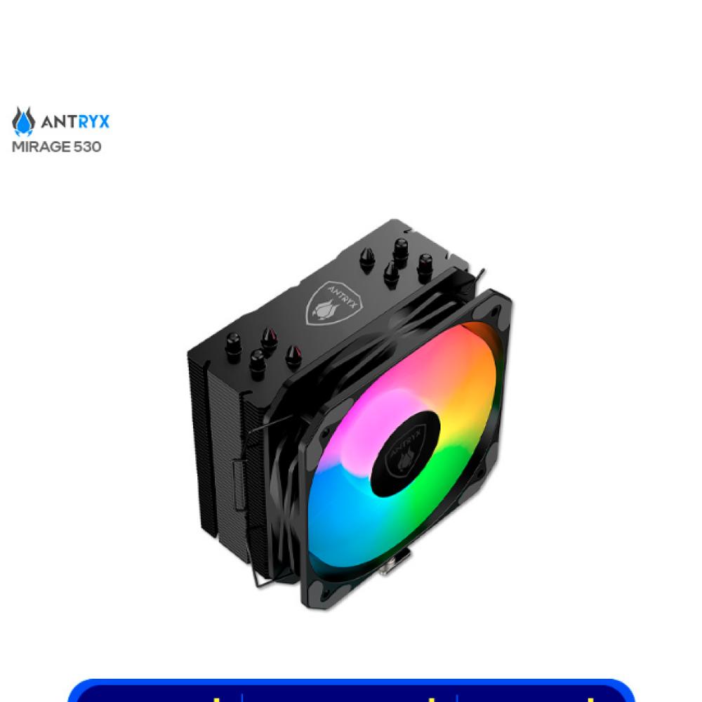 Elrefrigerador de procesador Antryx Mirage 530 ARGB (ACC-530KA) esun sistema de enfriamiento por aire diseñado para ofrecer un equilibrio entrerendimiento silencioso, compatibilidad y estética personalizable.