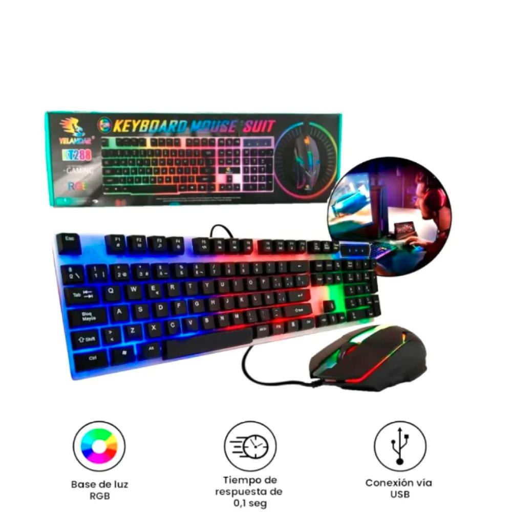 El Kit GMGYelandar KT288 es un conjunto de teclado y mouse con iluminación LED RGB idealpara juegos en PC. Es una opción económica con características orientadas amejorar la experiencia de juego.