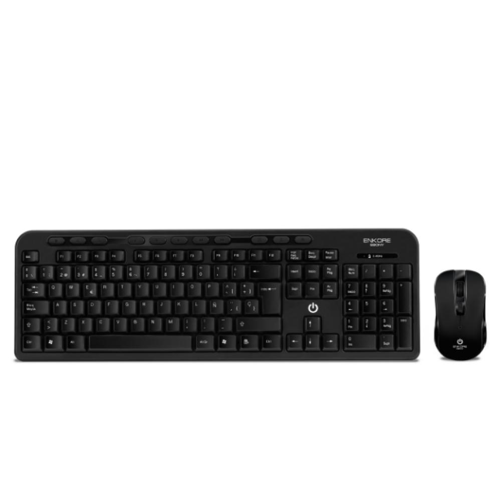 El Kit inalámbrico Enkore Ebony ENK T800 es un combo multimedia que incluye un teclado y un mouse inalámbricos. Se conecta mediante un nano receptor USB a una frecuencia de 2.4 GHz.