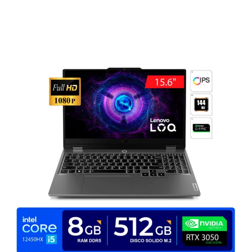 Notebook Lenovo LOQ 15IAX9 15.6" FHD IPS, Core i5-12450HX hasta 4.4GHz 8GB DDR5-4800MHz