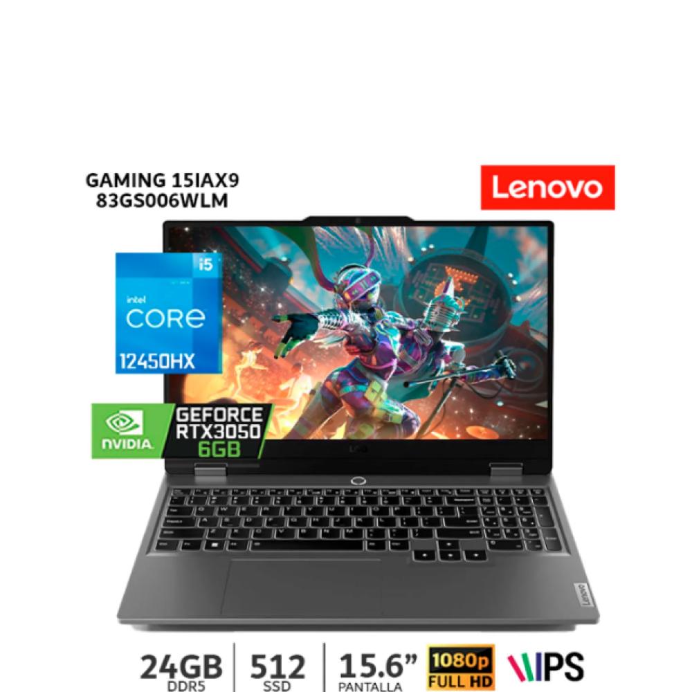 Notebook Lenovo LOQ 15IAX9 15.6" FHD IPS, Core i5-12450HX hasta 4.4GHz, 24GB DDR5-4800MHz