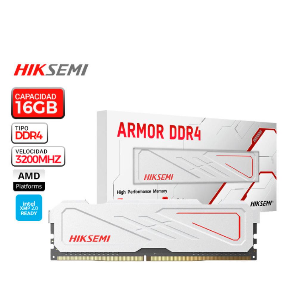 La memoria HIKSEMI ARMOR 16GB DDR4 3200 MHz en color blanco es un módulo de memoria de escritorio diseñado para mejorar el rendimiento en tareas de alta exigencia, como juegos, edición de video y multitarea intensiva.