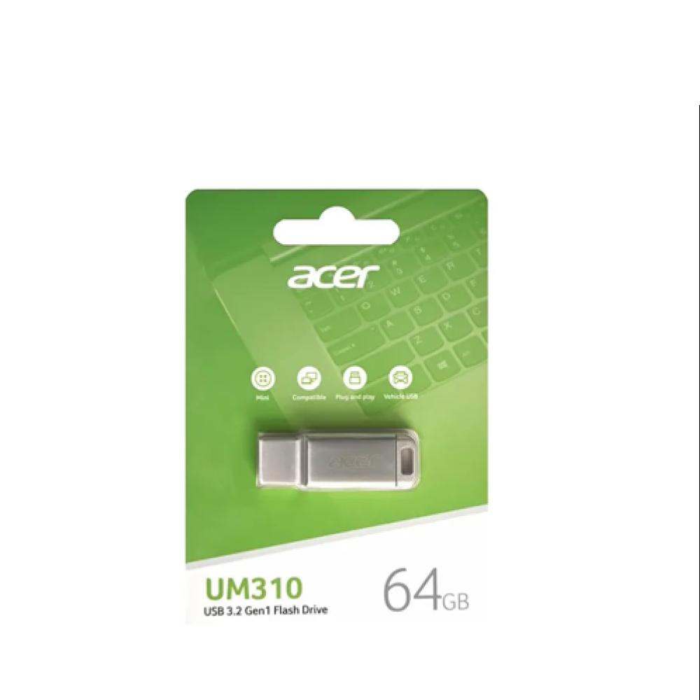 La memoria USB Acer UM319 de 64GB USB 3.2 de metal es una unidad de almacenamiento portátil diseñada para transferencias rápidas de archivos.