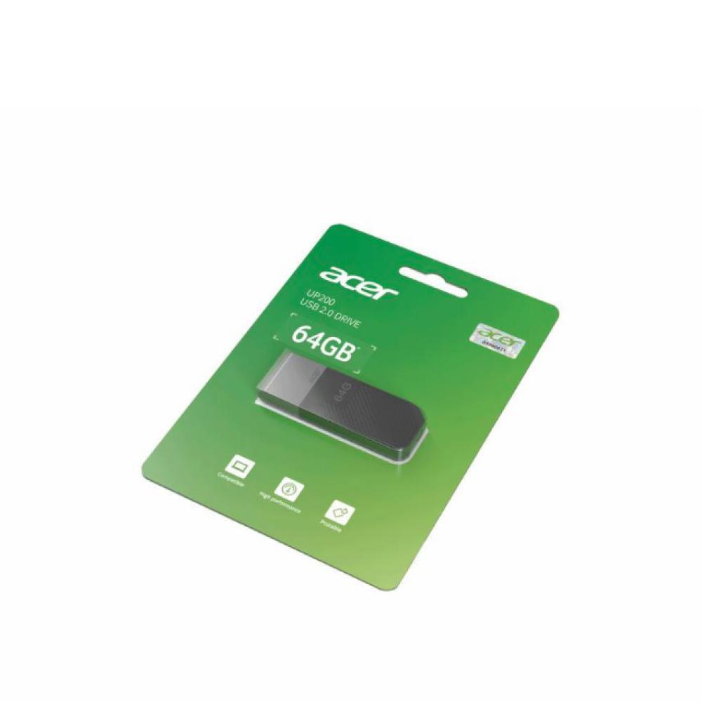 La memoria USB Acer UP200 de 64GB USB 2.0 en color negro es un dispositivo de almacenamiento portátil que destaca por su confiabilidad y diseño práctico.
