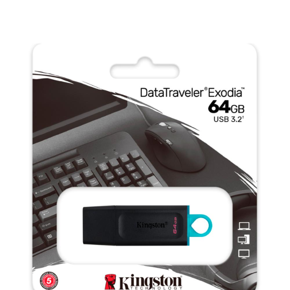 La Kingston DataTraveler Exodia de 64 GB es una memoria USB con una interfaz de alta velocidad USB 3.2 Gen 1, diseñada para transferir y almacenar de manera rápida y conveniente una amplia variedad de archivos digitales. Su diseño práctico y ligero la hace ideal para el uso diario en entornos como el trabajo, la escuela o el hogar.