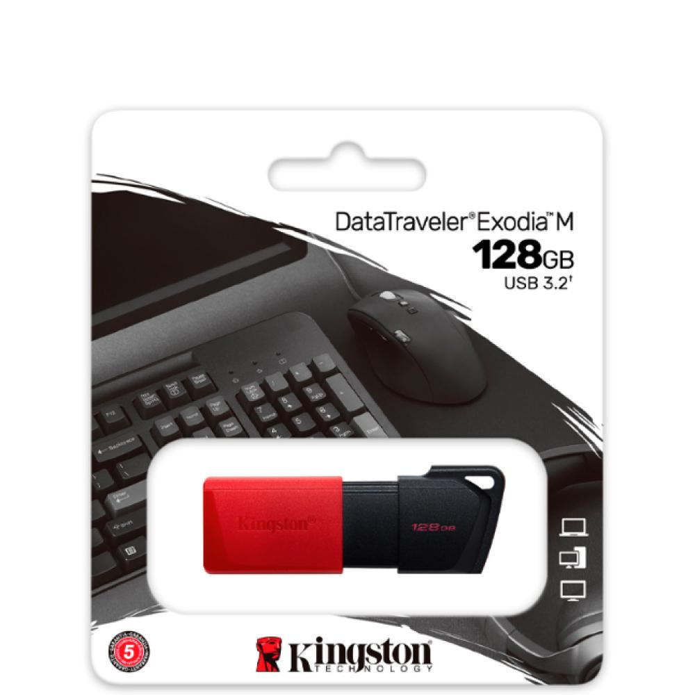 La memoria USB Kingston Data Traveler Exodia M de 128 GB, con conexión USB3.2 Gen 1 y diseño en color negro y rojo, es una solución de almacenamiento portátil con una buena relación calidad-precio. Está pensada para un uso diario y transferencias de archivos rápidas y sencillas