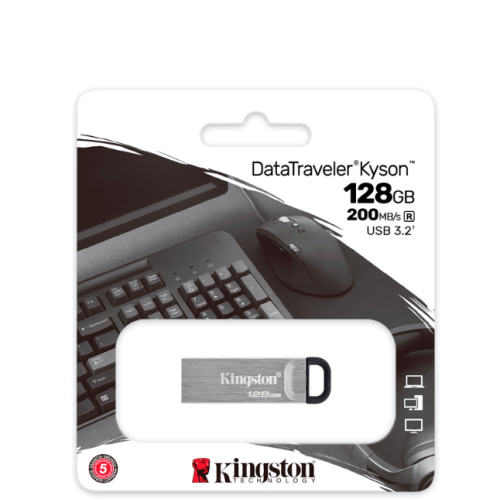 La Memoria USB Kingston Data Traveler Kyson de 128GB en color plata es una unidad flash de alto rendimiento con interfaz USB 3.2 Gen 1 y un diseño metálico sin tapa. Está diseñada para ofrecer velocidades de transferencia rápidas, tanto en lectura como en escritura.