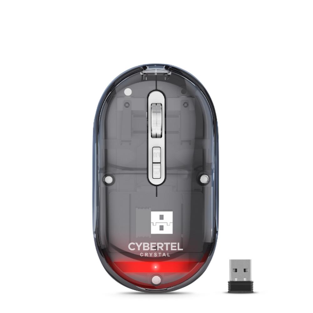 El mouse inalámbrico Cybertel Crystal CYB M713-3M es un mouseóptico versátil que cuenta con conectividad triple (Bluetooth, 2.4 GHzinalámbrico y cable USB para carga) y una batería recargable de litio integrada.Es compatible con sistemas operativos Windows y otros, y se destaca por sudiseño de clic silencioso