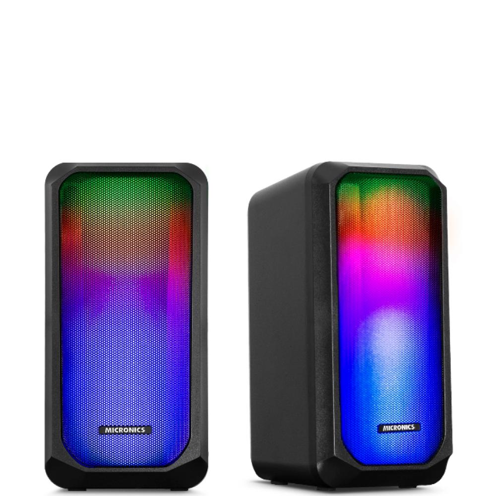 El parlante2.0 Micronics Luxor S305U Black RGB 2.5" es un sistema de sonidobásico diseñado para escritorio que cuenta con iluminación RGB"Flaming" y alimentación por conexión USB. Es compatible con equiposde audio, como computadoras de escritorio, laptops y televisores.