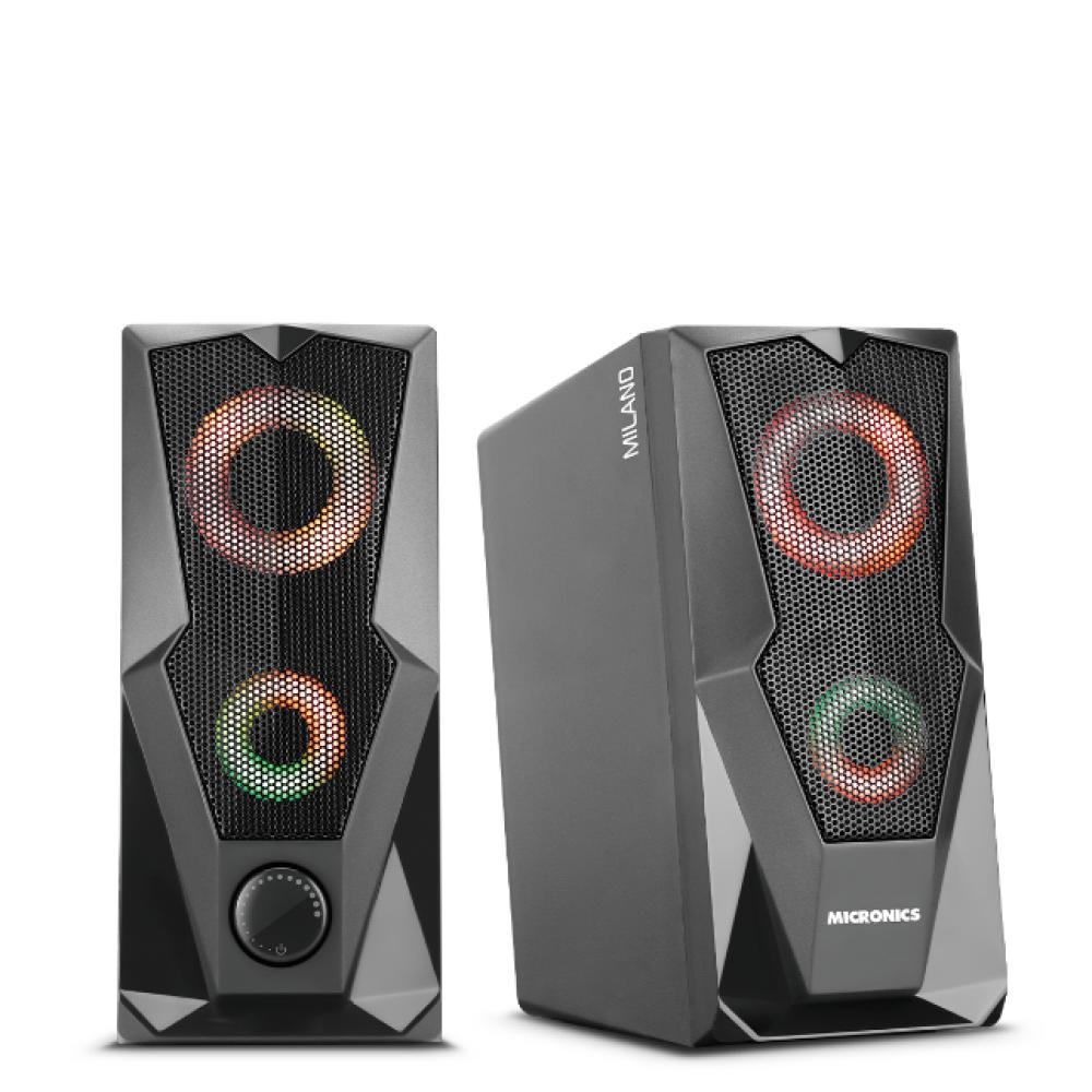 El parlante2.0 Micronics Milano MIC S310 Black 7W RGB es un sistema de sonidomultimedia diseñado para computadoras, laptops y otros equipos de audio. Cuentacon iluminación LED RGB para un efecto visual atractivo y se alimenta a travésde un puerto USB.