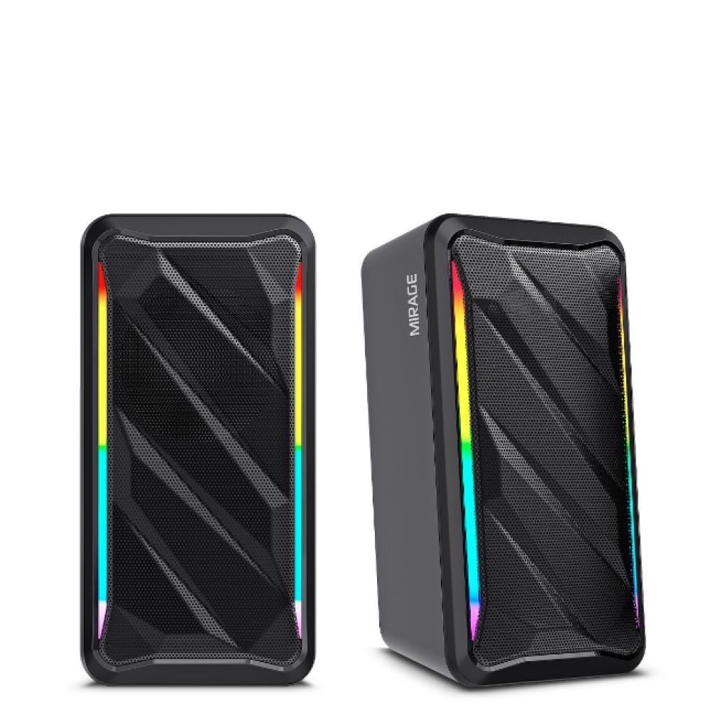 Elaltavoz Micronics Mirage MIC S311 2.0 RGB es un sistemade sonido estéreo compacto diseñado para escritorio, ideal para su uso con PC,laptops y otros dispositivos de audio. Destaca por su iluminación LED RGB y sualimentación mediante conexión USB.