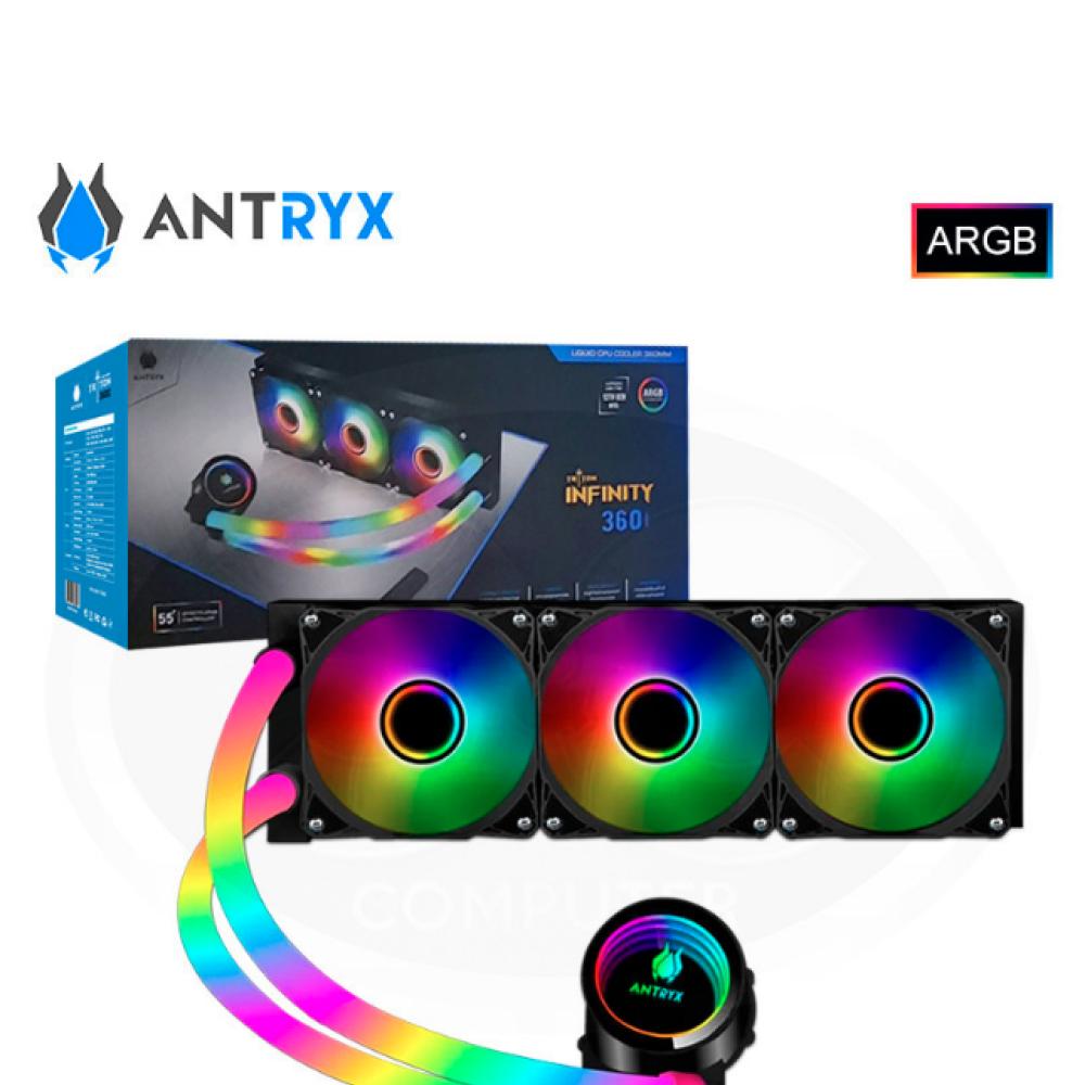 El sistemade enfriamiento líquido Antryx Triton Infinity 360 Black ARGB esun enfriador de CPU todo en uno de alto rendimiento, diseñado paramantener las temperaturas bajo control en equipos de gama alta. Se destaca porsu diseño con iluminación ARGB de efecto infinito, tanto en los ventiladorescomo en los tubos, ofreciendo una estética moderna y personalizable.