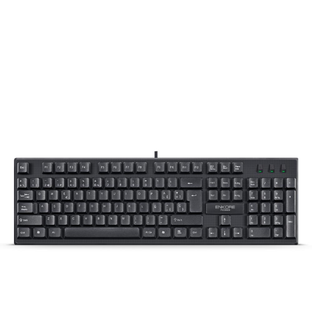El Teclado Enkore Access ENK 308 Black USB es un teclado estándar y alámbrico, diseñado para uso de oficina, hogar o estudio, que destaca por su durabilidad y sencillez