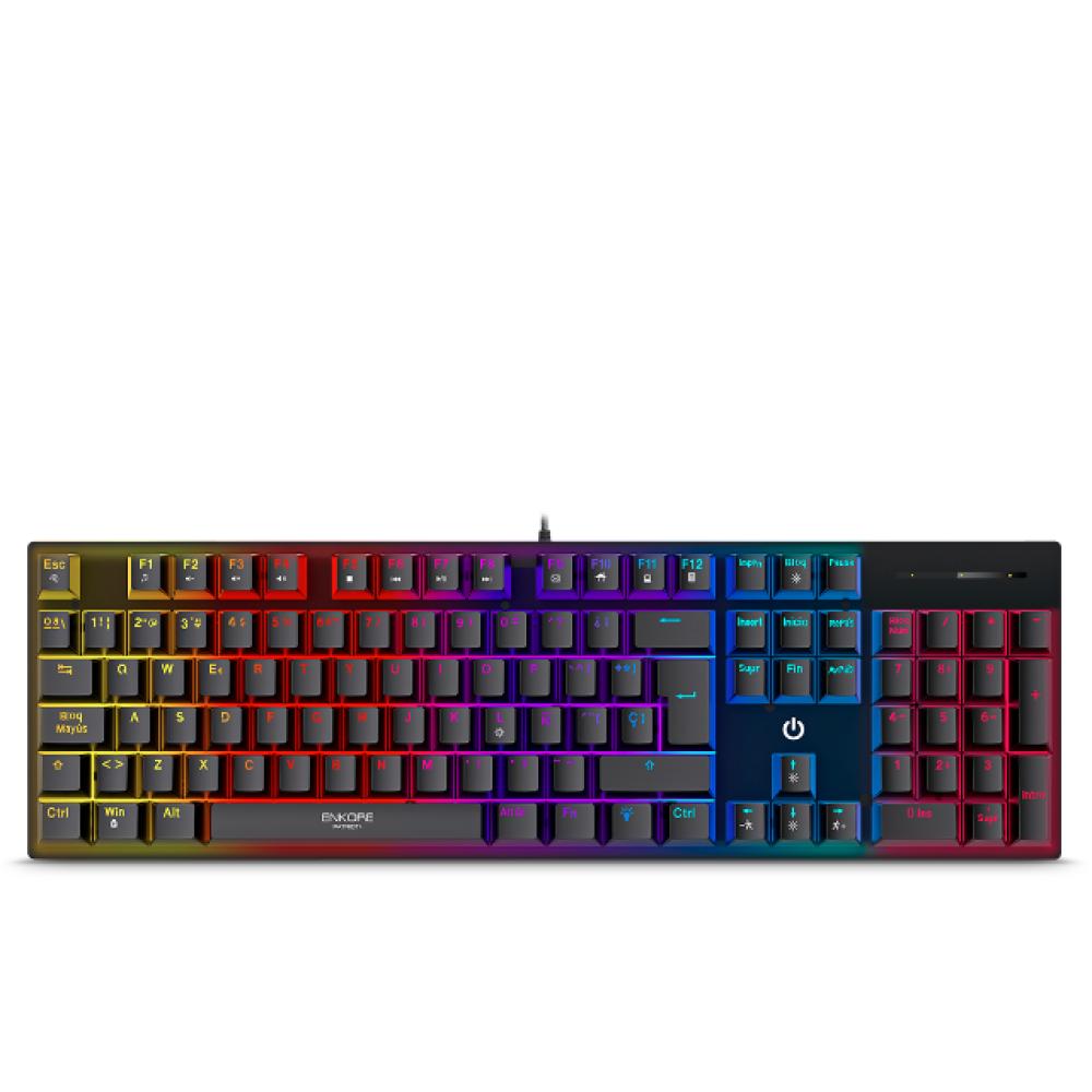 El teclado mecánico Enkore Patriot ENK1013+ USB es una opción de entrada al mundo del gaming mecánico, ideal para jugadores que buscan una experiencia de respuesta superior a la de un teclado de membrana, sin realizar una gran inversión.