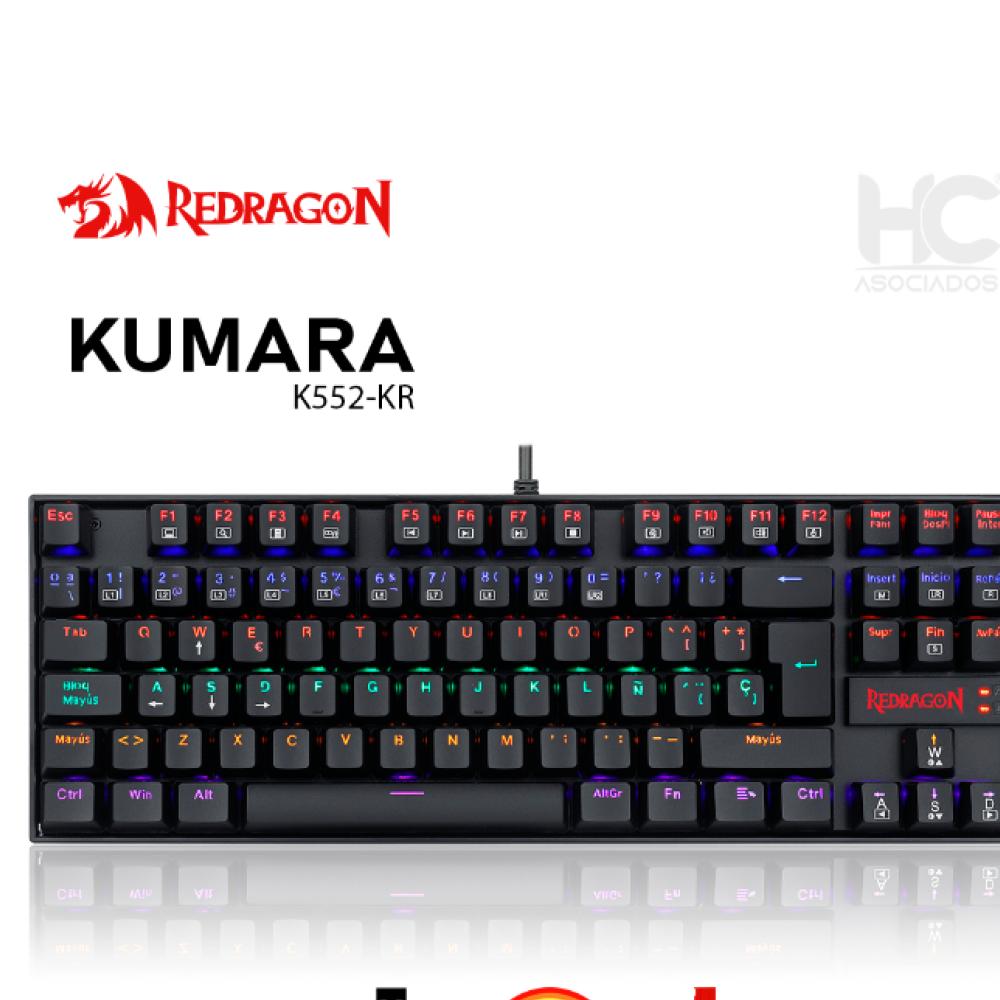 El teclado mecánico Redragon Kumara K552 KR Switch Red en color negro es un modelo compacto y duradero, diseñado especialmente para videojuegos. Su principal característica son los switches mecánicos rojos, que ofrecen una experiencia de escritura lineal y rápida, ideal para jugadores que buscan una respuesta inmediata y silenciosa.