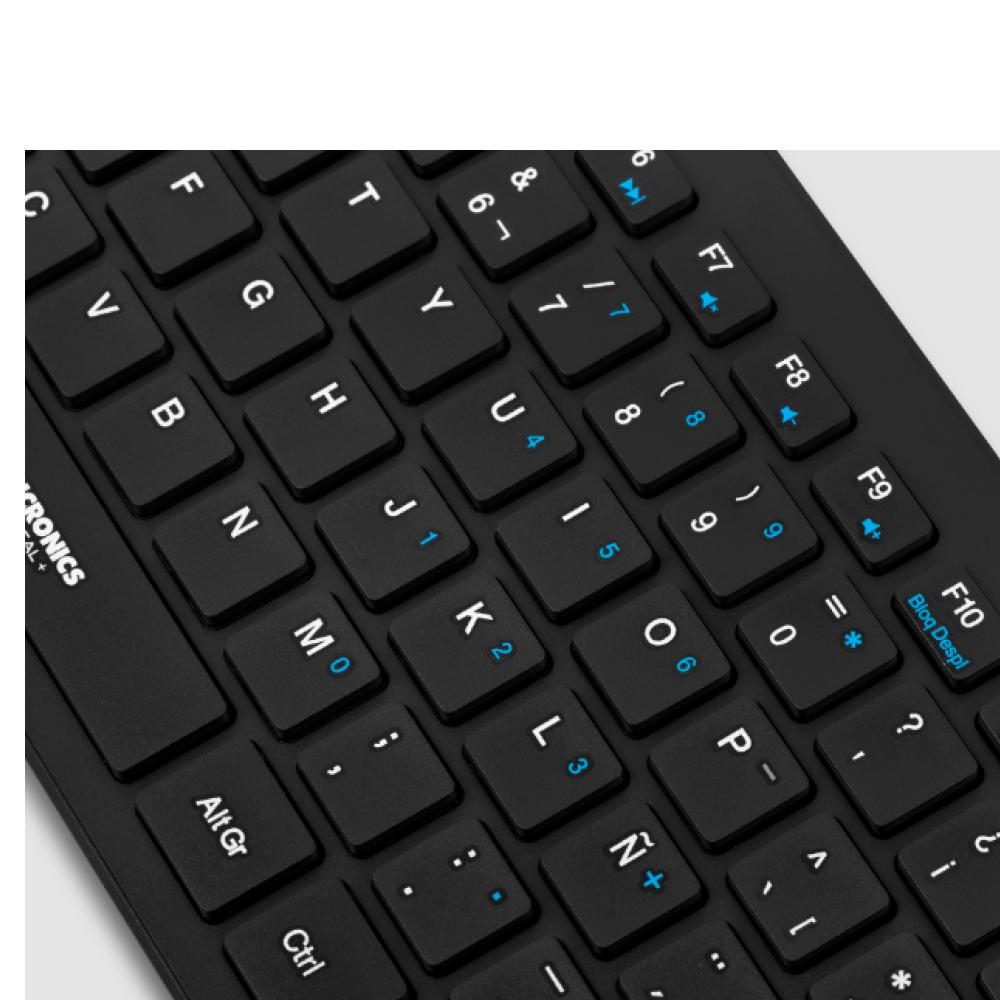 El Teclado Multimedia Micronics Pascal+ Slim MIC K500 USB esun modelo delgado y con cable, diseñado para uso de oficina, hogar o estudio.Se caracteriza por sus teclas tipo chocolate, que permiten una escriturasilenciosa y suave, y por incluir funciones multimedia accesibles mediante latecla FN.
