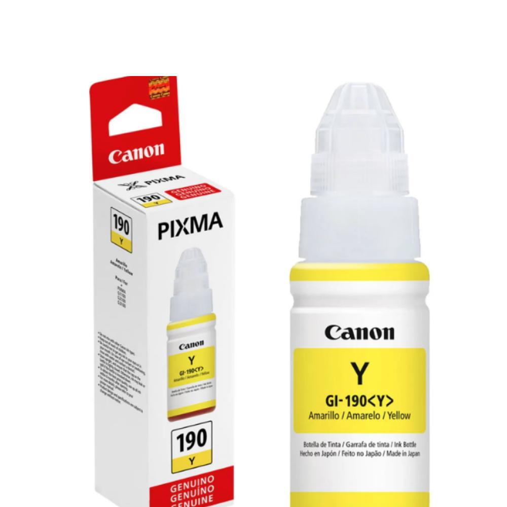 Trabajadapara diseñar en perfecta combinación de tu impresora, la botella detinta Canon GI-190 amarilla, será tu aliada para imprimir sin parar.
